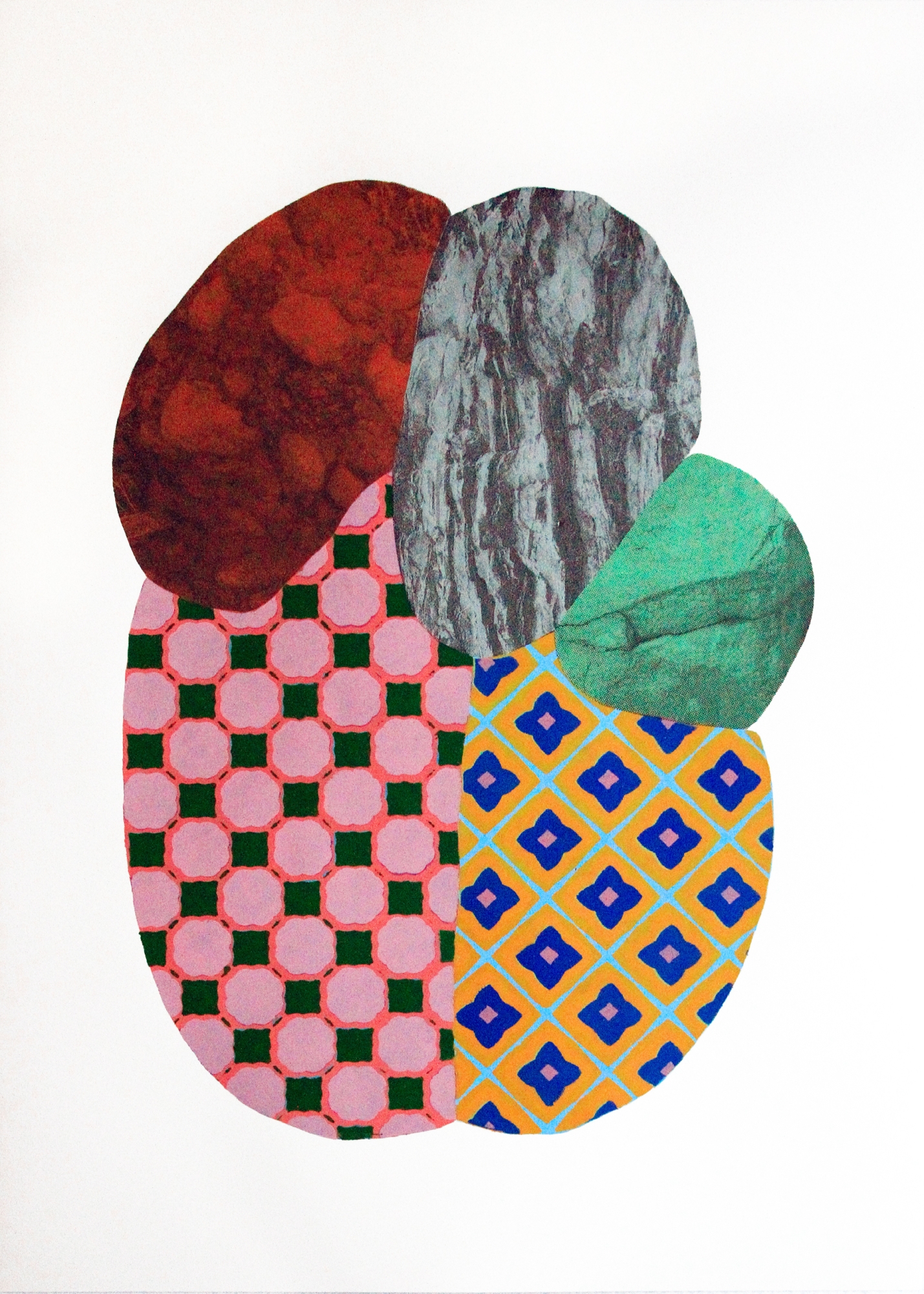 Unterschiedliche Medien wie Malerei, Installation, Objekt und Siebdruck lassen organische und geometrische Formwelten spannungsvoll ineinandergreifen: gemalte Strukturen verdichten, wiederholen und spiegeln sich in aufwändiger Schablonentechnik, ein laborartiges Kreislaufsystem imitiert den Austausch von Säften & Energien oder gedruckte Ebenen dringen in die Tiefen der Materie und akkumulieren sich zu einem imaginären Gestein.