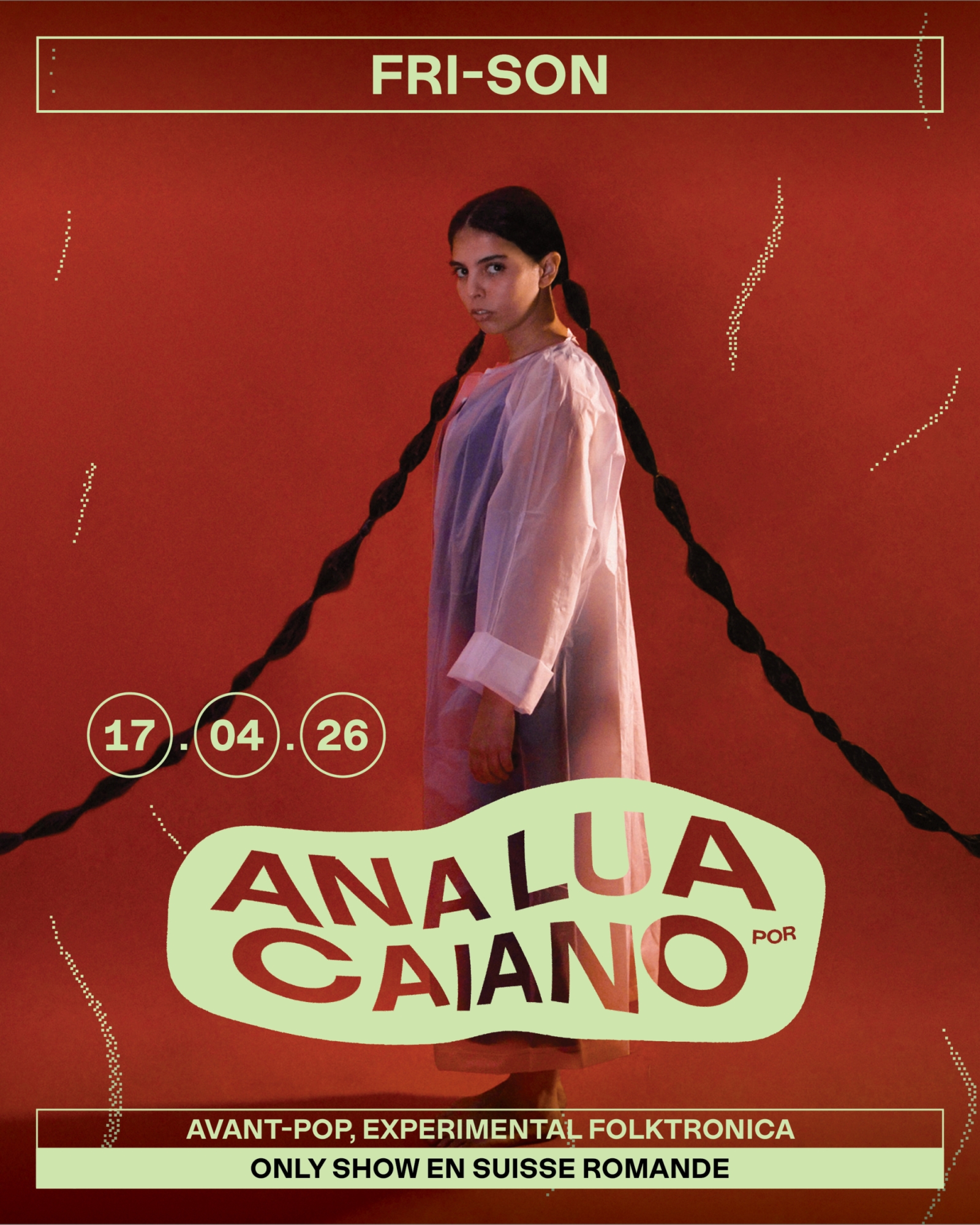 Mit ihrem ersten Album, Vou ficar neste quadrado, das zu den besten Veröffentlichungen 2024 zählt, tourt sie rund um die Welt. Mit einer magnetischen Bühnenpräsenz und fesselnden Live-Shows kommt sie nun ins Fri-Son – für ein Konzert, das richtig unter die Haut gehen wird.