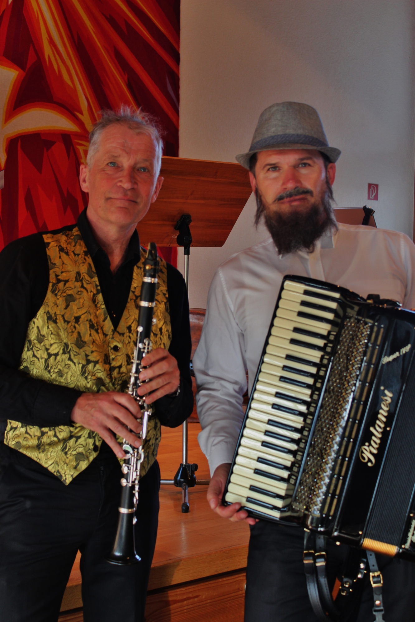 Schon wieder Klezmer! , denken Sie vielleicht, und: ja, in den letzten Jahrzehnten hat man diese wieder auferstandene Musik der Juden Osteuropas (und Amerikas) viel und gerne gehört. Und zwar überwiegend instrumental. Der Gesang, der immer sehr prägend war rückte etwas in den Hintergrund, beschränkte sich auf neuere Werke oder neu interpretierte Klassiker wie „Bei mir Bist Du Sheyn“ oder „Papirosen“ Was Berner Klezmer einzigartig macht ist wir dass Sänger Mariusz Chrzanowski genau die Stimmung treffen die früher in den Synagogen und Yiddischen Musiktheatern zum klingen kam. Er kommt aus eben der Gegend (Polen) und aus dem Umfeld wo diese Musik in den vergangenen Jahrhunderten entstanden und gewachsen ist Zum "Klassischen " Repertoire kommen auch noch neue Instrumentalkompositionen von Mariusz