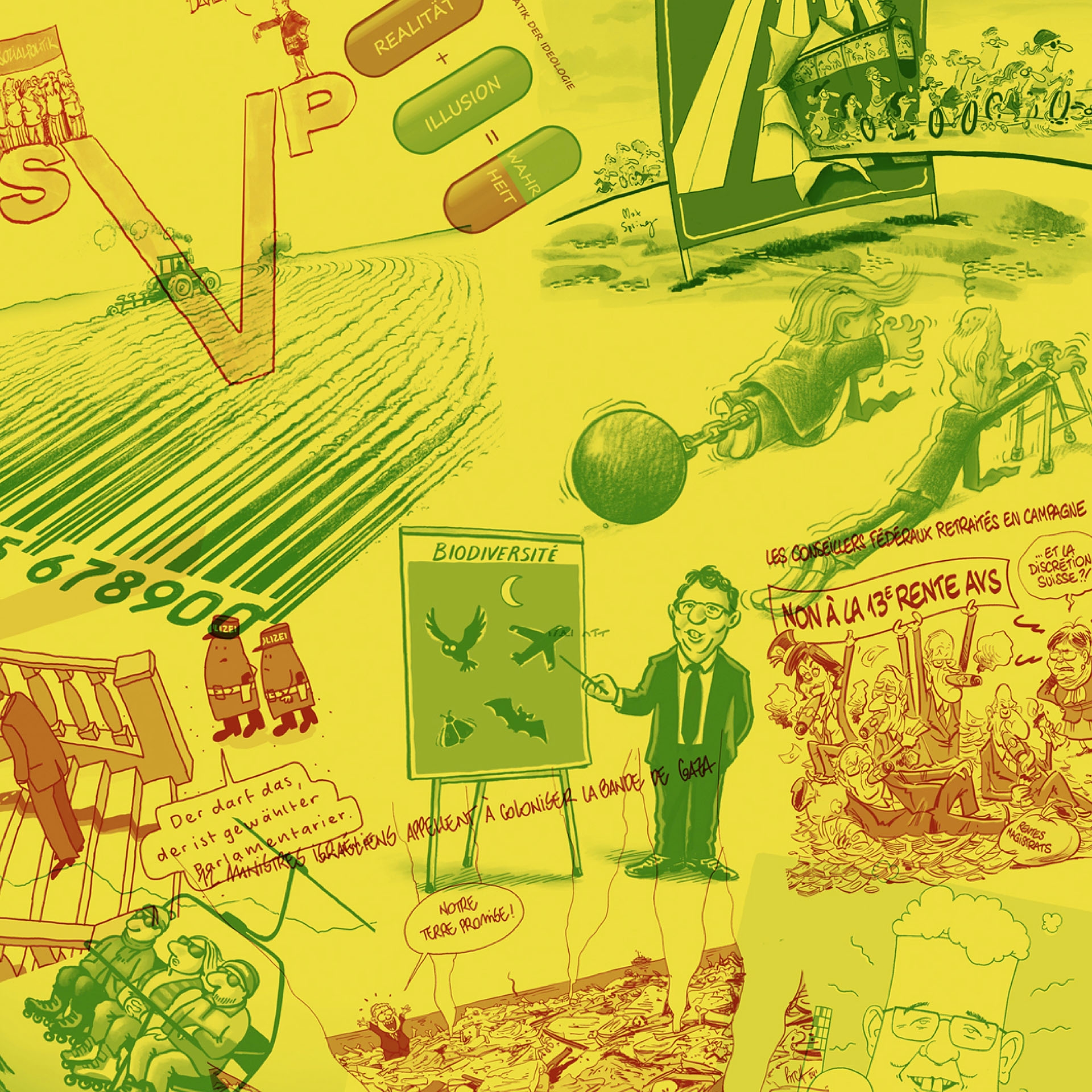 Pressezeichnen, das ist die Kunst die täglichen Geschehnisse zu überzeichnen und humorvoll auf den Punkt zu bringen. Nicht selten gelingt es mit einer einzigen Zeichnung besser den Kern einer Geschichte zu vermitteln als mit einem ausführlichen Text. Der Humor bietet einen leichten Zugang, die Zuspitzung sorgt dafür, dass wir sofort verstehen, worum es geht. Doch Vorsicht – leicht verdaulich ist die Pressezeichnung deshalb nicht. Das Lachen bleibt regelmässig im Hals stecken, denn die Zeichner:innen halten uns auch immer wieder den Spiegel vor. Dieser meistunterschätzten Form des Journalismus bietet Gezeichnet 2025 – Die besten Schweizer Pressezeichnungen des Jahres eine Plattform.