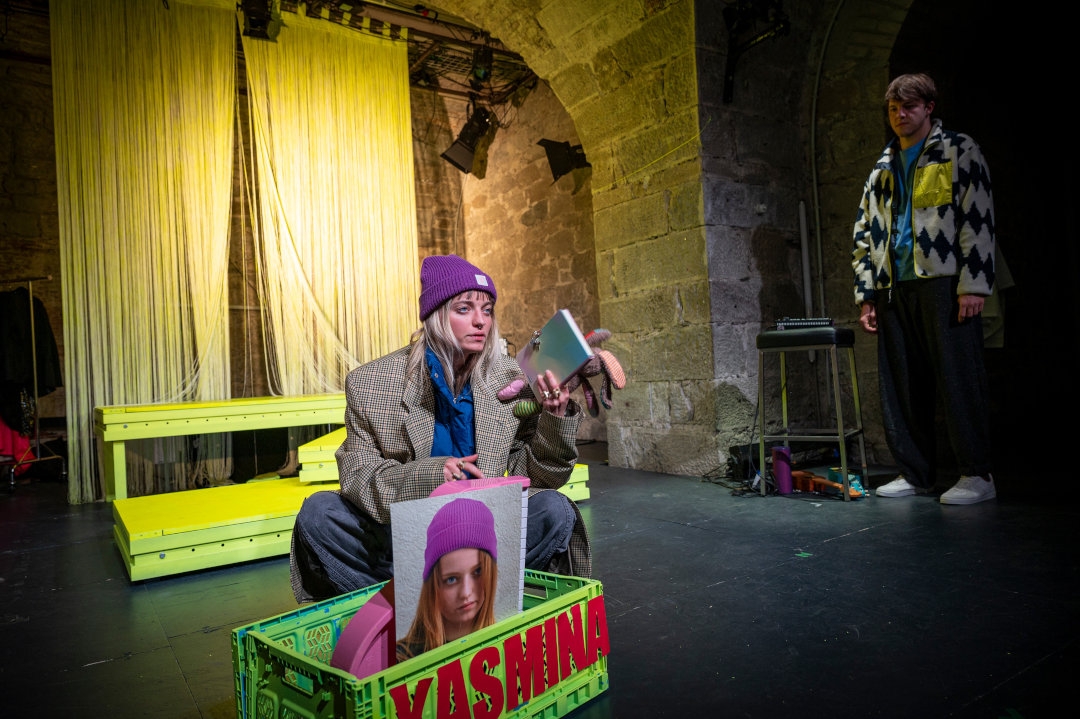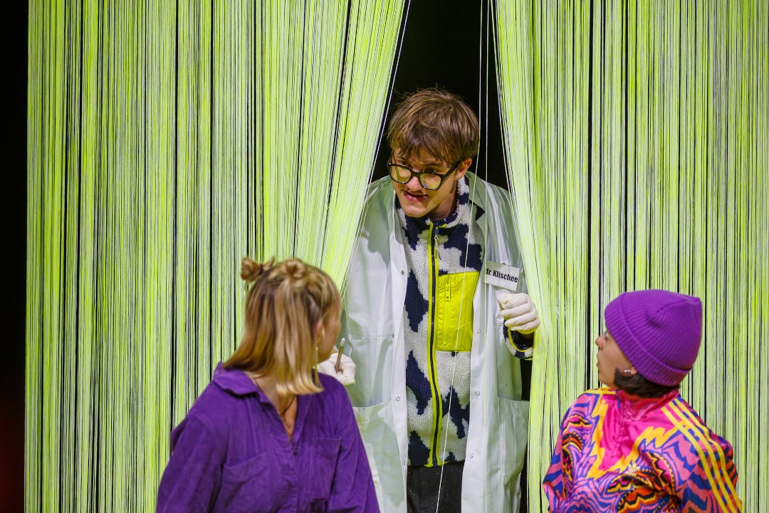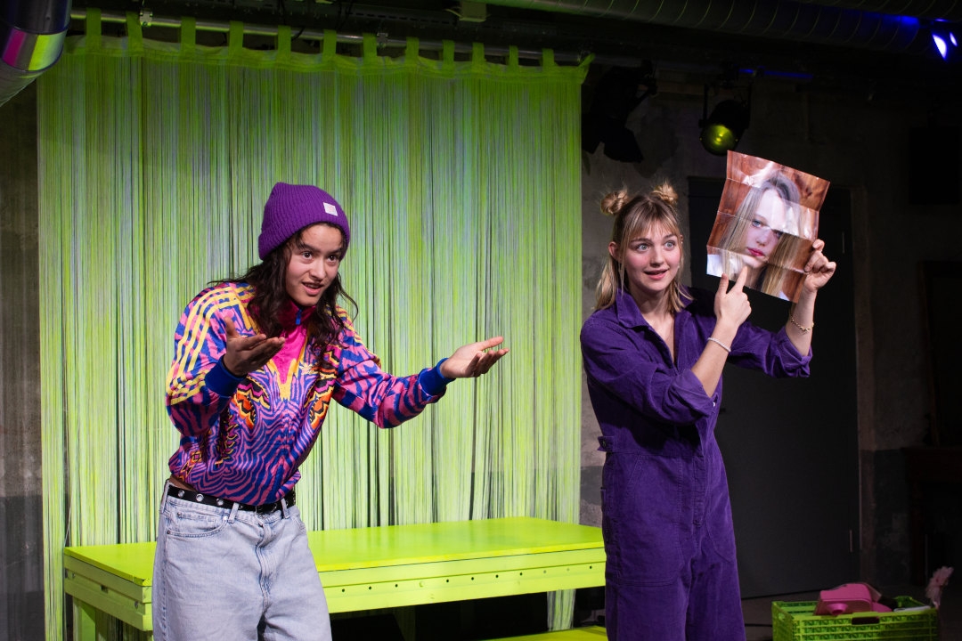 Text: Eva Rottmann. Spiel: Mira Guggenbühl, Noémie Märki, Sebastian Wepfer, Vivienne Vogt. Off-Stimmen: Anna-Katharina Müller, Urs Jucker, Fadrina Arpagaus. Regie: Annina Dullin. Bühne/Kostüme: Mariana Vieira Grünig. Musik: León Cremonini. Dramaturgie: Fadrina Arpagaus. Künstlerische Mitarbeit: Elina Wunderle. Licht: Benjamin Auer. Assistenz: Dominique Legrand. Fotos: Bettina Diel, Levin Geser, Sepp de Vries. Produktionsleitung: Roland Amrein, Deborah Imhof, Matthias Nüesch. Dauer: 75 Minuten. Sprache: Mundart. Ab 13 Jahren.