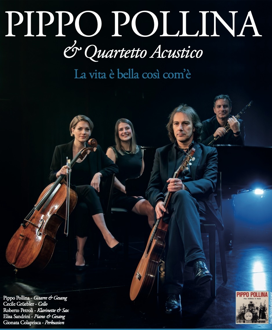 Pippo Pollina, der vielseitige sizilianische Musiker, ist als einer der kreativsten Künstler in der europäischen Singer-Songwriter-Szene und seit mehr als dreißig Jahren unterwegs. Unzählige Plattenproduktionen, internationale Tourneen, prestigeträchtige Kollaborationen verleihen ihm einen besonderen Status, denn er sich durch Kontinuität und Engagement sowohl im Studio als auch live auf der Bühne erarbeitet hat. Begleitet von der Cellistin Cecile Grüebler, der Pianistin Elisa Sandrini (am Flügel) und dem Klarinettisten Roberto Petroli bringt er im Januar 2026 ein neues Album heraus und geht mit diesem kammermusikalischen Projekt auf Tour.
