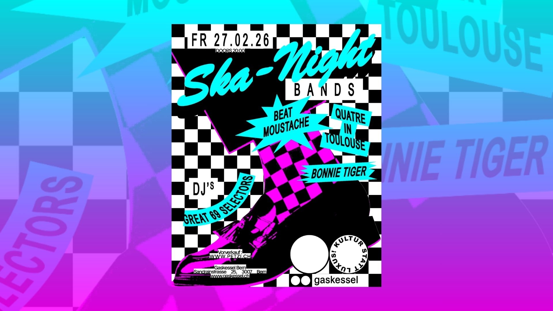 Bereit für stampfende Offbeats, tanzende Fans und eine Nacht voller Bläserpower? Dann markier dir den 27. Februar 2026 fett im Kalender. Der Gaskessel Bern verwandelt sich in das pulsierende Zentrum der Schweizer Ska-Szene!